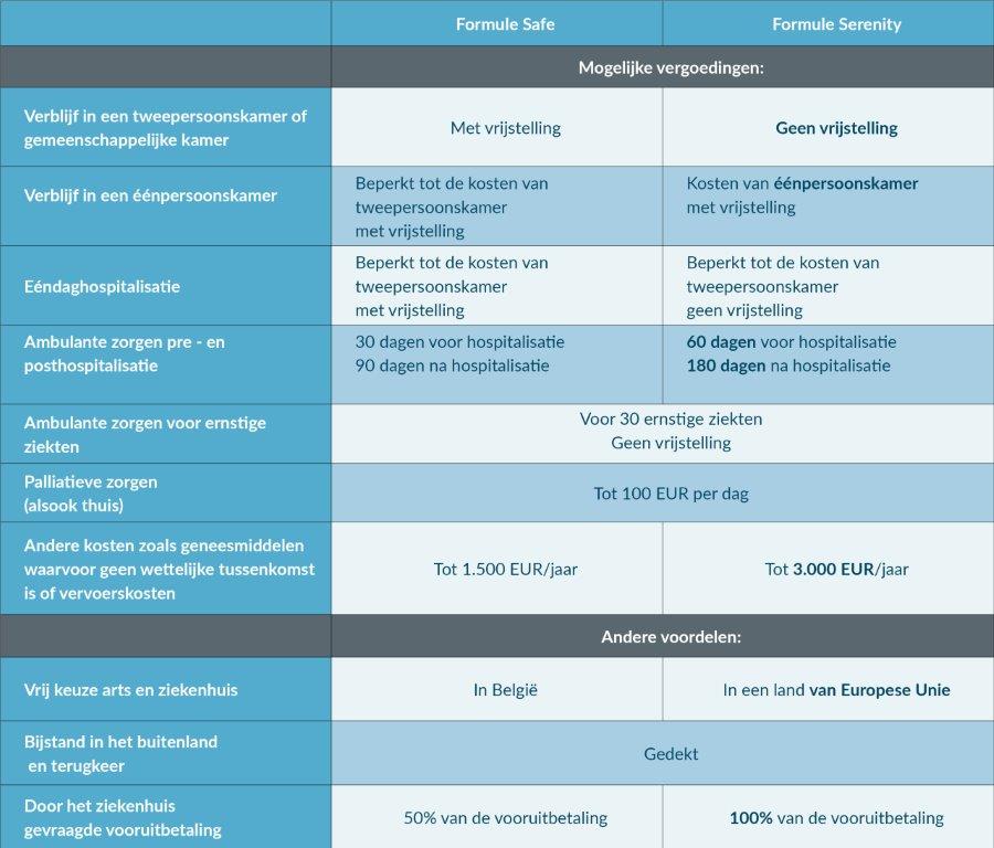 Er zijn twee formules: “Safe” en “Serenity”. Hieronder vindt u een overzicht van de voordelen van deze twee formules. U kiest het type formule dat het beste bij u past: